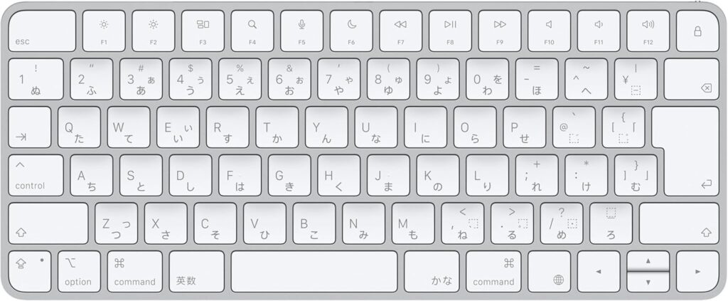 市販のワイヤレスキーボードは種類が多く、どれを選べば良いか迷いますよね。Magic Keyboardの最大の強みはMacとシームレスに連携すること。ファンクションキーの動作もMac特有の操作に最適化されていますし、キーのフォントや配列もMacユーザーが使いやすいよう作り込まれています。また、Appleの安心感と優れた品質も魅力のひとつ。長く使える「良いもの」を求める方にはぴったりです。